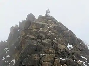 Parts of the ascent route is exposed and you will need a rope at least for the chute; less experienced climbers need a rope for other parts of the climb too. Loose rocks are also a risk along the route.