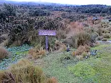 🌍 La Virgen at about 4200 m ASL is the highest point reachable by car. It's about 10 km away from Chaupi but given the condition of the road, expect the drive to take an hour. Here you'll find a parking lot and some signs, it's the official entrance to the natural reserve but there's no other infrastructure like a kiosk or park office. You can camp here, though, and there's water in a stream. From here it's a three-hour walk to the Nuevos Horizontes hut (see Sleep below). First the path goes through a swampy landscsape with small trees and shrubs, then the landscape turns more volcanic.