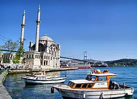 Finally arriving in 🌍 Istanbul on the scheduled day, a few hours before his appointment, he walks past the Maiden's Tower (geographically inaccurate, likely added for cinematographic effect) to Ortaköy, the square of the mosque under the bridge. He quickly picks out Juli's braidlocks from the crowd. When Juli asks him where his girlfriend is, he starts reciting the lines suggested by Juli earlier in the journey for him to deliver to the girl he is after when they meet: