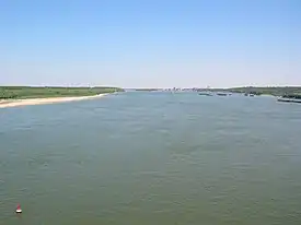 They drive across the Romanian countryside, past its communist-era abandoned factories, and through the national capital, 🌍 Bucharest, selling bits and pieces of the rickety Dacia they stole as spare parts for covering their travel expenses as they go. On the Bulgarian border, likely in 🌍 Giurgiu, their "no passport — no entry" headache persists, so they turn around, and before straying too far from the border, take a dirt side road to try their luck there. However, the road abruptly ends at an abandoned ramp on a narrow river.