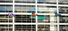 From left to right, the Australian flag, Aboriginal flag and Torres Strait Islander flag