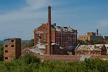 A few locations have (or had) entire company towns built around a single industry or manufacturer. Some of these became ghost towns after the mine or factory closed.