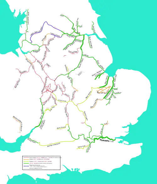 The modern network in England consists of a series of linked waterways (both river and canal), some isolate navigable rivers and the Norfolk Broads.