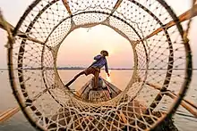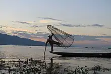 - Sunset at the lake. When your boatman approaches a fisherman, he will likely do the iconic Inle fisherman pose for you, balancing their net on one leg and leaning over the water. But as you near them, you will find outstretched hands demanding money for the pose. You should to tell your boatman not to wait near the fishermen if you do not wish to pay them.