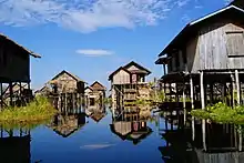 - π Inle Heritage Stilt Houses, Inle Heritage, Innpawkhon Village, Inle Lake (South side of the lake, by Nampan village & by Innpawkhon "the weaving village"), β +959778212003, contact@inleheritage.org. Check-in: 14:00, check-out: 12:00. βRoomsβ are actually individual houses, on stilts like the rest of the property; there are just 10 of them, which helps getting a very personalized experience. βRoomsβ are beautiful and super functional, featuring AC + fan, a bed so large that one could sleep across the width, a mosquito net, sockets everywhere, binoculars to spot birds, a private terrace, an individual solar water heater... Swimming pool. On site restaurant βGrandma's Inthar Cookingβ. Free/substantial/healthy breakfast (06:00-09:00) Free wifi (that reaches the restaurant, the rooms, the pool). Free guided tour of the property which includes a Burmese cats village, an aquarium, a vocational school, a cooking school, GAP vegetable gardens, a gift shop featuring original local crafts. Room made twice a day. Staff members are very smiling and speak excellent English. This social business is part of Inle Heritage not-for-profit organization (their vocational training center accepts around 40 students a year... for free, even providing them with full board accommodation!). US$150 for low season, US$230 for high season.