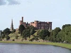 - π Inverness Castle, IV2 3EG. Closed. A great defensive position it's not: castles on this site have been serially destroyed, most recently in 1746 when its Jacobite occupiers wrecked the medieval bastion to prevent its use by government forces. The elegant pink sandstone edifice that now stands here was built in 1847. Until 2020 It housed the law courts - they've moved to a modern building on Longman Rd, and the castle is being redeveloped as a visitor attraction. So meanwhile you just admire the exterior.