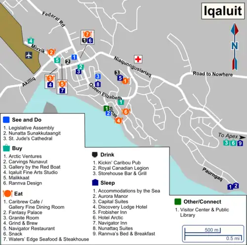 - 🌍 Unikkaarvik Regional Visitor Centre (Nunavut Tourism), 220 Sinaa Street, ☏ +1 867 979-4636, info@nunavuttourism.com. M-F 9AM–6PM, Sa Su 1PM–4PM. Has information on the whole territory, plus displays on local wildlife and culture in an adjoining museum.