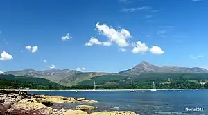 Arran has no air service. You’ll almost certainly arrive on the ferry from Ardrossan to Brodick (Gaelic Tràigh a' Chaisteil), the village that is the island’s transport hub. This southern part of the island is lowland in nature, with the bulk of the accommodation and amenities. From Brodick the main road south leads to Lamlash (Gaelic An t-Eilean Àrd) which is the main population centre and has the hospital and council & law offices; so if you have official business on Arran, it’ll probably involve a meeting here. Lamlash also has the best anchorage for small craft, with its bay sheltered by Holy Island, to which there are boat trips. The last large village is Whiting Bay then, as the road rounds the southern tip at Kildonan, the island becomes much wilder.