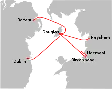 Douglas is the port for all ferries. These are operated by the Steam Packet Company, carry vehicles, and sail from: