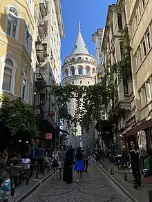 • 🌍 Galata Tower (Galata Kulesi) ( Şişhane 500 m, Beyoğlu 400 m downhill, Karaköy 400 m uphill, Tünel Meydanı 400 m; between Karaköy/Galata and the lower end of Istiklal St), +90 212 245 41 41. Daily 08:30-23:00 (last entry at 22:00). It was built by the Genoese in the 14th century on the city walls of Galata, marking the highest point of their territory. Ride an elevator and take two flights of stairs to the top, then walk the parapet for a 360°-view of Istanbul, including the entire Sultanahmet peninsula: crowned by Topkapı Palace, the Blue Mosque and Hagia Sophia. A beautiful spot worthy of a lot of pictures. 175 TL.