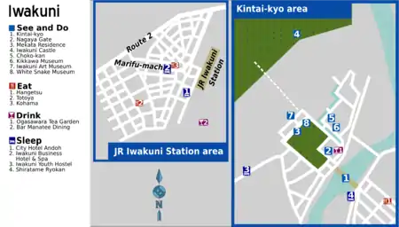 - Iwakuni Volunteer Tour Guides, 2-6-51 Yokoyama, ☏ +81 82-41-1477. Mar-Nov: daily 09:30-17:00.