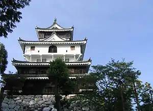 - 🌍 Iwakuni Castle (岩国城 Iwakuni-jō) (about a five-minute walk from the cable-car station on Shiro-yama), ☏ +81 827-41-1477, kankou@city.iwakuni.lg.jp. Daily 09:00-16:30. Although the original castle only stood for seven years, that was excuse enough for a reconstruction during the 1960s. The foundations of the original lie a short distance behind the new one; the builders apparently decided to move it closer to the cliff for scenic purposes. Inside the castle is a small historical museum. ¥260.