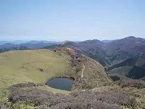 - 🌍 Tsurugi-san Campground. Above Mi-no-Koshi, there are a few camping sites available along the side of the trail to Mt. Tsurugi peak, just below the upper chair-lift station. They are high (about 1,700 m) and somewhat exposed, and not advisable if the weather outlook is less than fair. (Head to one of the huts at the summit if the weather turns sour, or retreat down to a minshuku in Minokoshi.)