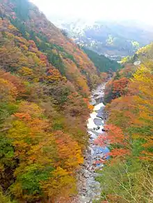 - Autumn. The air clears up nicely as the leaves begin to change (though typhoons still occur, see above), allowing for long views through the valley. Leaves in the upper reaches near Mt. Tsurugi start to change around early-October, and the majority of the valley is in full splendor through much of November. This is a popular time to visit, and the weekends and public holidays then bring an increased number of visitors to the valley. On the mountain tops, snow will begin to fall as early as the beginning of November.