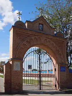 When you approach the site from Kutuzova St., the first thing you see are two ornate gates. Although often confused with fortress gates, they in fact belong to a later period and flank the entrance to the Romanian cemetery that was created at the end of 19th century and existed on the premises before World War II. Similar to the fortress, the cemetery was destroyed by the Russian/USSR authorities, although it was not nearly as menacing. The left (southern) gate is a gate of the Cemetery of Russian Soldiers who died during the Siege of Izmail (1790). The Cemetery is located on the place of the former Cavalier Bastion of the fortress. The gate brings you to the rebuilt memorial of Russiian soldiers, the ruin of a Romanian mausoleum (so dilapidated that it can be confused with a piece of ancient Greek heritage), and the information table in Russian, dedicated to the history of Izmail Fortress.