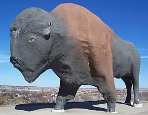 - π Frontier Village, 17th St SE (Exit 258, off I-94), β +1 701 252-6307. year round, daily 9AM-9PM. Jamestown is home to "The Worldβs Largest Buffalo", named Dakota Thunder, a 60-ton cement sculpture that stands 26 feet tall and stretches 46 feet long. It was built in 1959. A number of old buildings were moved in around it to create the Frontier Village, which today attracts over 100,000 people annually. See a buffalo herd and three albino buffalo, White Cloud, her son Dakota Miracle, and another albino calf, Dakota Legend. White buffalo are sacred to the Lakota people. Free admission.