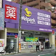 Your best bet is to look for the large, multi-story drugstores (薬局 yakkyoku) nearly always found outside larger train stations, which always prominently display the character 薬 (kusuri, "drug/medicine"). Matsumoto Kiyoshi is particularly ubiquitous and easily spotted thanks to its garish yellow signage, but not all stores carry baby goods.