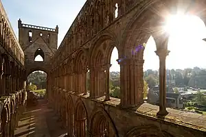 - 🌍 Jedburgh Abbey, Abbey Bridge End TD8 6JQ, ☏ +44 1835 863925. Apr-Sep: 10AM-5PM, Oct-Mar: 10AM-4PM. This ruined but imposing Augustinian abbey was founded in 1138 and was a frequent target for invading English armies. It continued in use as a parish church at the Reformation in 1560, saving it from wreckage, and it served until 1871 when a new town church was built. There is a cloister and herb garden, and a visitor centre with 8th century carvings and artefacts excavated from the abbey grounds. In 2022 the abbey interior is closed for building safety, but you can see plenty from the street. £3.50.