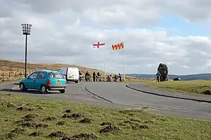 - 🌍 Carter Bar on A68 is the border with England. There's a large layby, and in summer ice-cream and burger vans and busking bagpipers greet the coach tours. The view south into Northumbria is a lonely moorland, north is better with the quiltwork of forests and fields, and triple-peaked Eildon hills. The ridge blocks the view west. East you look over the long spine of border hills to The Cheviot, bleak and often cloud-wreathed - see Kirk Yetholm if you want to climb it or embark on the Pennine Way.
