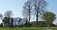 Jelling is an old and important historical town in the history of Denmark. In the Viking Age it served as the royal seat of the first Monarchs of the Kingdom of Denmark. Jelling is the site of a large stone ship and two large burial mounds, the Jelling stones and Jelling Church which are an UNESCO World Heritage Site since 1994. In the North Mound, built between 958 and 959 CE (possibly for King Gorm of Denmark), an empty burial chamber was found. The South Mound was built around 970 and contains no burial. Beneath the two mounds is a large stone ship from around the end of the 9th century. Between the two mounds stand two rune stones, the Jelling stones. Near the stones, Gorm's son King Harald Bluetooth built a wooden church (965), and beneath it re-interred (965–966) the remains of his father.