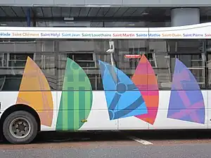 Buses display the 12 parish names in Jèrriais