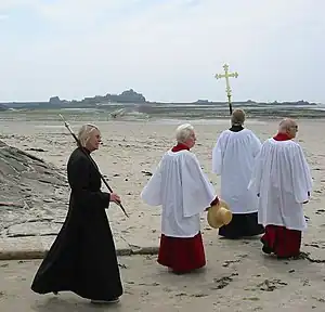 These pilgrims aren't waiting for the ferry