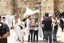 - 🌍 The Western Wall (Known in Hebrew as Ha-Kotel Ha-Ma'aravi- הכותל המערבי). 24/7, 365 days a year. Part of the western retaining wall of the Temple Mount, it was built by Herod the Great during his expansion of the Temple in 20 BCE. The wall became the Jews' chief place of pilgrimage during the Ottoman Period. In this period it become known as the "Wailing Wall", where Jews lamented the destruction of the Temple by the Romans in 70 CE. This is still the closest site to the Temple where Jews can pray (many rabbis say Jews are forbidden by Jewish law from ascending the Temple Mount, and in any case secular and Muslim authorities do not allow Jews to pray on the Temple Mount). The plaza in front of the Wall is divided by a fence, with a large area for men on the left and a smaller area for women on the right. Anyone is allowed to approach the wall - complimentary kippahs are provide for men who come bare-headed, while shawls are provided for women who do not come appropriately dressed (shoulders, chest, midriff, and thighs covered). The wall acts as an outdoor synagogue with written prayers inserted into the crevices between the large stones. Photography is not allowed on the Sabbath (Friday night and Saturday until sundown). Monday and Thursday mornings many bar mitzvahs are held, drawing large crowds of families and guests. Friday night at sundown there is the welcoming of the Sabbath (Kabbalat Shabbat) which includes prayers, singing and dancing.