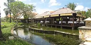 - π Puri Bambu Hotel, Jl Pengeracikan, Kedonganan, β +62 361 701468, reservation@puribambu.com. All rooms have balconies overlooking the pool or gardens. 2 restaurants and a large pool with a sunken swim-up bar. Complimentary airport transfers. From US$50.