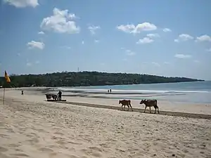 Jimbaran is just south of the airport and Kuta. It used to be a backwater: just a tiny fishing village with a daily market. Everything started to change in the 1980s and Jimbaran is now home to several world-class 5-star beach resorts, and a few more moderate mid-market hotels. There is however little in the way of budget accommodation and there are also many high-end villas in this area, particularly on the ridges of high ground above Jimbaran Bay. This has resulted in monikers such as the "Beverly Hills of Bali" or "Millionaire's Row".