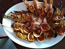 - fire-grilled (bakar) seafood with your own choice of various fish, crab, squid, shrimp, lobster, and other shellfish