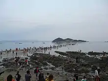 - The Mysterious Sea Road Festival (Yeongdeung Festival). Twice each year in early summer. Dates vary year to year due to tidal restrictions. Between the coastal village of Heodong-ri and the islet of Mo-do, southeast of Jin-do, some of the world's largest tides occur. During a few days in the spring (in the second month of the lunar calendar), a causeway appears, nearly 3 km long and up to 40 m wide. This natural phenomenon (translated as the Mysterious, Magical, Miracle or Mystic Sea Road or Sea Way) brings tourists interested in both the Christian parallel of the Moses Miracle, and the ancient Korean legend of Grandma Ppong, left behind when her people fled a tiger-infested Jindo for Modo, and reunited with them via this rainbow-shaped land bridge. Tourists can experience many traditional folk dances, cultural activities and dogs shows during the Mystic Sea Road Festivals. Expect to see thousands of visitors for this very limited time experience. If you plan to go to this event, it would be wise to arrive the night before, as transportation logistics to the island and then to the event from other locations in Korea can be quite challenging.