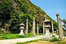 - Jinguashi Shinto Shrine. The Jinguashi Shinto Shrine, also called the “Mountain God Shrine,” is dedicated to the three deities of “ôkuninushinomikoto, kaneyamahikonomikoto and sarutahikonomikoto. In 1933, after the Japan Mining Company took over the management of Jinguashi mine, it commemorated the event by building a Shinto shrine half way up the mountain below Siping lane. The original shrine included a main hall, prayer hall and pavilion for worshipers to wash their hands. There were also two walkways along the stairs, at either side of which were 3 torii (gate), 5 flag platforms and 1 bronze bull. During the Japanese era large-scale religious ceremonies and rituals were held here every year. Unfortunately, the buildings were damaged in the post-war period and today all that is left are 2 torii (gate), a few stone lanterns and the shrine’s original foundation, beams and pillars.