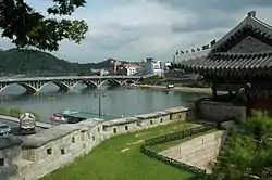 - 🌍 Chokseongnu Pavilion (at the east end of the fortress), ☏ +82 055-749-5171. 09:00-18:00. Chokseongnu is in Jinju-seong. CNN ranked one of the 50 best places to hear if you visit Korea. The command base during the battles of Jinju, this beautiful pavilion is next to the cliff with commanding views across the river. During days of peace, civil service exams were held here. ₩1,000 (price included in Jinju-seong admission).