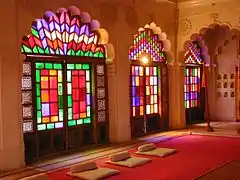 - Moti Mahal. (Pearl Hall). Pearl-coloured inside and decorated with coloured glass windows, this is where the Maharaja held his audiences, with the five alcoves on the far wall allowing his queens to listen.