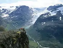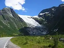 - 🌍 Kjenndalsbreen (Kjenndalen glacier). Glacier branch at the end of Lodalen/Kjenndalen valley, some 15 kilometers from Loen village. Road almost to the glacier.