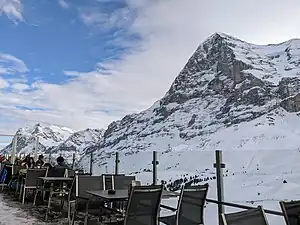 - 🌍 Eigernordwand. This unmissable glass-fronted chalet has a self-serve cafeteria as you enter, and a full-service restaurant to the back. Both serve Swiss classics food like rösti, schnitzels and sausages, although the restaurant has a wider menu with some international selections like Thai green curry. The terrace outside has great views, looking towards the Eiger's north face (hence the name), and is quite warm even in winter when the sun is out. Cafe mains from Fr. 20, restaurant from Fr. 35.