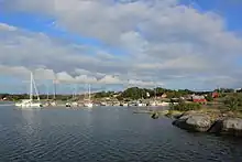 There are guest harbours at Hellsö village (Havspaviljongen), Brudhäll in the main village and Sandvik, with camping, cottages or hotel (see Sleep below for services not specific to boaters).
