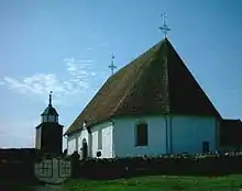 Kökar is one of the few islands in Åland with noticeable contours, showing picturesque cliffs to the east, now set a bit back from the coast. There is a very attractive little church on a separate island that is easily reached on foot from the ferry port by turning east. There are the ruins of an old monastery beside it. As is common in Åland, the bell tower is near to but separate from the main church building.
