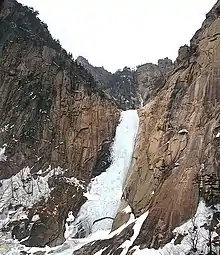 - Kuryong Falls. 4 metres wide and with a drop of 74 metres, the falls are an impressive experience. There is a platform, the Kuryong Pavilion, offering a good view. The pond below is called Kuryong Lake. According to the myth, once upon a time nine dragons were there to defend the Kumgang Mountain. From the lake you can walk down a bit, cross Ryondam Bridge and then climb for 700 metres to Kuryong Rock: from here is a spectacular view of a deep valley and several lakes.