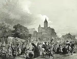 In 1938 the grounds were examined, and the ruins of 59 buildings, several craft businesses and one pressing plant were found. Nowadays, the monastery contains three churches and the ruin of the academy. The main church, Chwtaeba (holy ghost), originates from the 8th century.