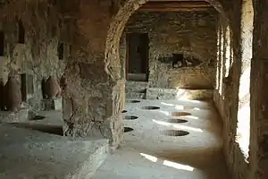 - ๐ Ikalto Monastery (7 km west of Telavi). A former academy and now monastery, it was founded by Zenon Iqaltoeli on in the 2nd half of the 6th century. Zenon Iqaltoeli was a Christian religious founder and one of so called 13 Assyrian fathers, also buried inside of the monastery. In the 12th century, the theologian Arsen Iqaltoeli, which studied at Mangana in Constantinople and worked together with Johannes Petrizi, founded the academy on the orders of King David. For centuries the academy was the cultural centre of Georgia, teaching theology, philosophy, astronomy, rhetoric, law and mathematics. The monastery was also used as a winery and a smithy. In 1616 the academy was destroyed by Shah Abbas I.