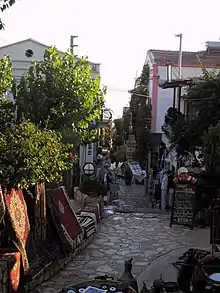 Lots of small shops in the village. Best buy would be a Turkish rug. There are many shops selling fake goods, especially T-shirts.