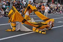 Kamaishi has a traditional dance called Toramae, which translates to Tiger Dance. Each Tiger Dance group is composed of members of the same company or organization. During festival times, Tiger Dance teams can be seen throughout the day and night practicing and performing in the streets, accompanied by a taiko drummer, a handful of bamboo flute players, and a handful of singers with iron cymbals. Tiger Dance groups will travel along the main streets, entering businesses (and sometimes homes), and will perform a short dance to the people inside. This is viewed as a blessing and a favor and the dancers do not expect payment, although a glass of beer, sake, or tea would be readily accepted.