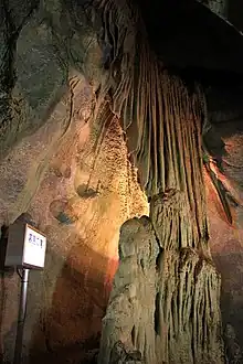 - ๐ Ryugado Cave (้พๆฒณๆด). One of Japan's top three caves, visitors can tour this large limestone cavern. At the cave's entrance real Yayoi Period pottery is visible in the walls. The cave is 4 kilometers in length (about 2.5 miles). Visitors are able to explore nearly half (1.5km or 1 mile) of it. 1000 yen for normal visits, 1500 yen for the 'adventure course' (must be in high school or older for adventure course).