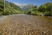 Kamikōchi (上高地, ) is a village in central Japan, roughly between Matsumoto and Takayama, in the Japanese Alps.