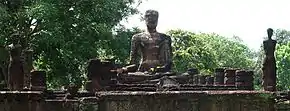 - 🌍 Khet Aranyik (Forest district). Thailand's Buddhist clergy was divided into "town monks" who studied, taught and performed ceremonies for the believers, and "forest monks" who went into retreat, dedicated to meditation and asceticism. The bigger part of the historical park, covered with light forest, consists of the hermitage ruins of the latter group. Thanks to the canopy of leaves, it is very pleasant to visit on foot or by bicycle (can be rented by the main entrance). Its main sites are Wat Chang Rop (with its remarkable chedi that is surrounded by 68 stucco elephant figures), Wat Phra Non (with a relatively well-preserved chedi and remains of a Reclining Buddha statue), Wat Phra Si Iriyabot (with the park's only surviving, nine metre high standing Buddha statue). Next to the main entrance to this zone is also the park administration.