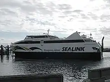 Ferries operated by Sealink travel between Cape Jervis on the mainland, and Penneshaw on Kangaroo Island. Ferries carry cars and passengers. They have a small cafe and bar on board, selling snacks and small meals during the trip. There is also a cafe at the Cape Jervis end, selling a similar range, which is open for departures but not necessarily for late arrivals.