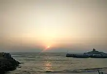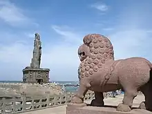 - 🌍 Vivekananda Rock Memorial (about 100 m from the shore, a regular ferry service exists between the mainland jetty and the rock). 07:30-16:00. The Rock has two Mandaps (halls); one belonging to Swami Vivekananda and the other belonging to a Holy Foot. The Holy Foot is a foot shaped carving found on the rock and is believed to be the footprint of Goddess Kumari who stood on this rock on one leg and performed the Tapasya (penance). The Rock memorial has a tall statue of Swami Vivekananda whose photographs are not allowed to be taken from inside the hall. Below the statue is mentioned the year of death of the Swamiji and the "probable" dates when Swamiji attained Samadhi on the rock. Here you can see both sunrise and sunset and it is one of the main tourist attractions. Golden hues of the Horizon are very impressive with a silhouette of the Rock Memorial. You should enter the main gate to the jetty for ferry before 4 pm, after that entry is denied. Nobody is allowed there after sunset, so if you were planning an evening visit hurry up and leave well before sunset so as to watch it from the beach. The last ferry leaves the island around sunset time with all the remaining visitors as well as the staff. The first stop of the ferry is the Vivekand Rock. People get off here for the Rock and those done with their visit get on to the ferry for its next stop at Thiruvalluvar Statue. From the Thiruvalluvar statue, the ferry returns to the boarding jetty. The ferry operator asks that you don a life saving jacket. Ferry: 50 Rs, memorial: 30 Rs, children under 5 free.