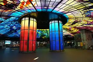 - 🌍 The Dome of Light (光之穹頂 / Guāng zhī qióngdǐng), Formosa Boulevard MRT Station. A public artwork in the concourse area of Formosa Boulevard station. Created by Italian artist Narcissus Quagliata, it is the world's largest stained glass installation. The dome is divided into four sections: water, earth, light and fire. It also takes the form of a yin and yang symbol. An audio guide (available in several languages) can be borrowed from the KRTC Art Shop inside the station. It costs NT$30 and gives a half-hour narration of the key features of the artwork. Don't miss the audiovisual show at 11:00, 15:00 or 20:00. Free.
