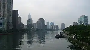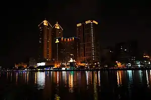 The area to the west of the Love River (愛河; pinyin: Ài Hé) includes the Gushan (鼓山) and Yancheng (鹽埕) districts.
